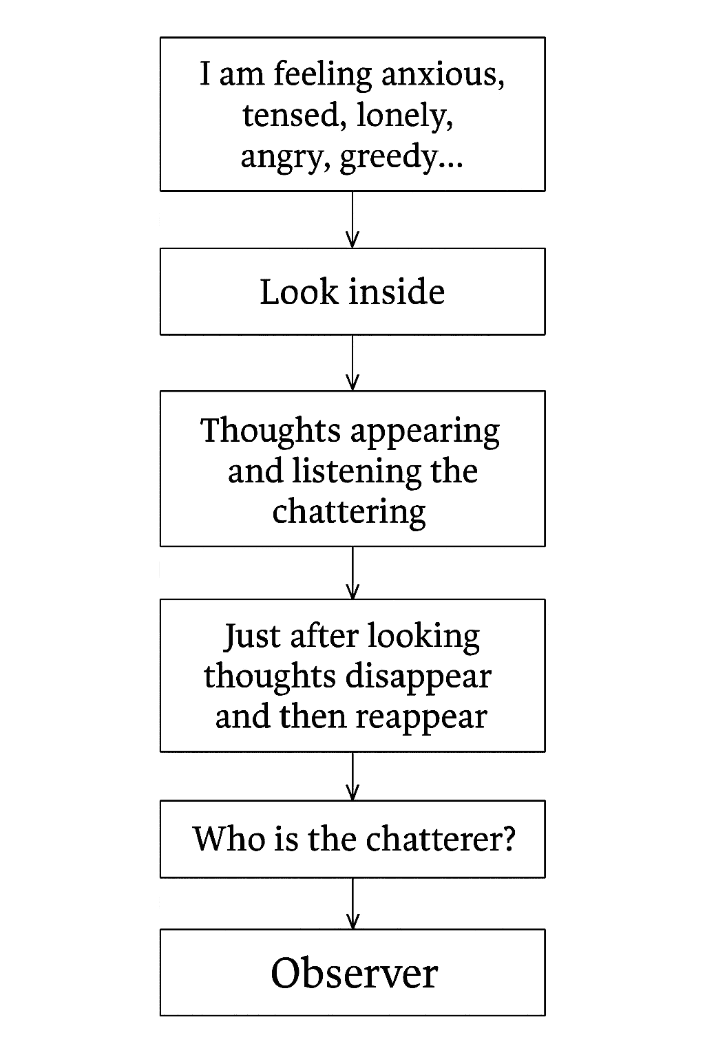 When emotions such as greed, jealousy, or anger arise, observe what happens. At that very moment, thoughts burst out like a volcanic eruption. The body experiences sensations, sometimes even shivers. Although it is difficult to remain aware during such emotional emergencies, if awareness is present, you can witness the automatic machinery of thoughts and reactions in action.